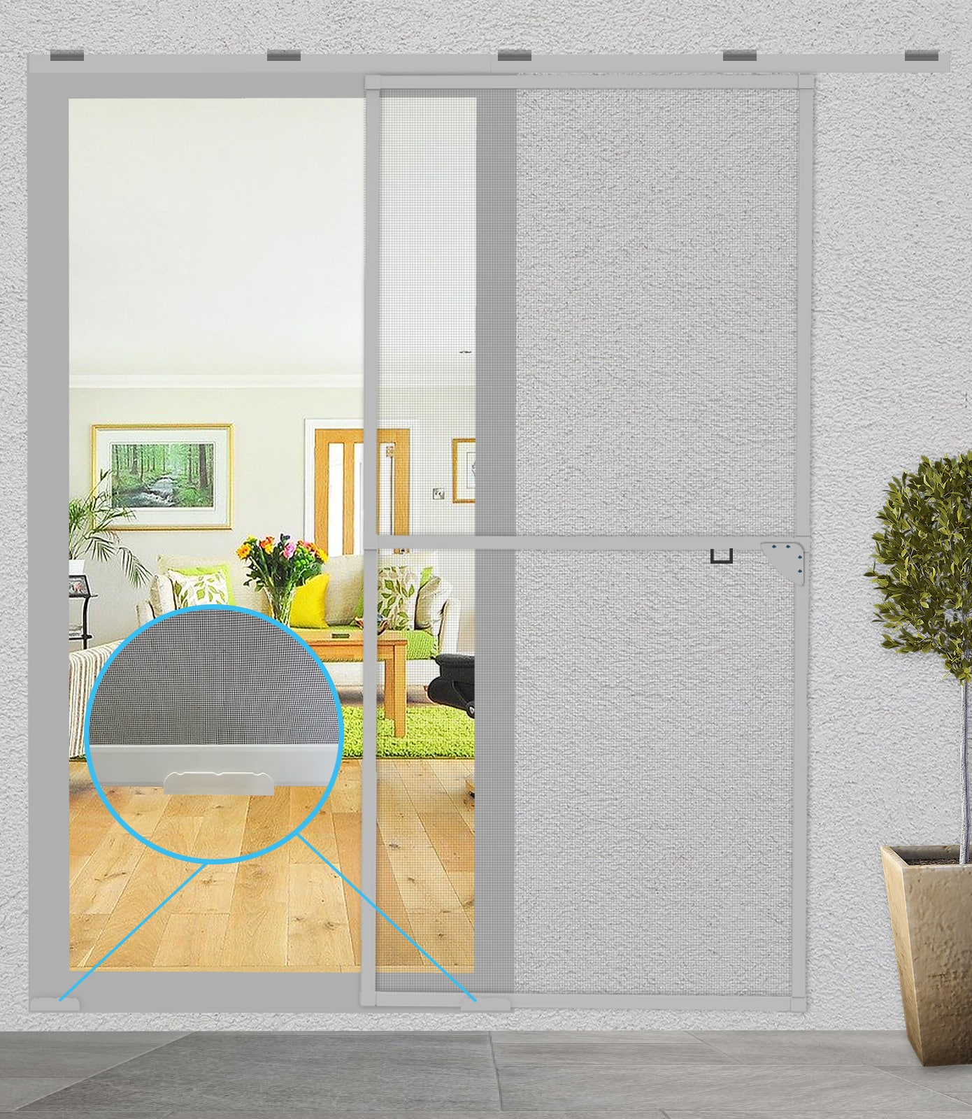 Verkon tiheä rakenne pitää kutsumattomat lentävät ulkopuolella, mutta rakenteen ansiosta ilma pääsee hyvin läpi. Liukuoviverho sopii hyvin esim. lasiterasseille joihin perinteistä hyönteisoviverhoa ei voi asentaa. Oviverhoa voi myös pienentää jollain asennus onnistuu myös lasiparvekkeille. Oven maksimikoko on 240 x 120cm, joten maksimissaan yhdellä verholla suojata hyttysiltä 120cm leveän aukon. Myös asennus tuplaoviin tai laseihin onnistuu jolloin kahdella verholla suojaa jopa 240cm aukon. Liukuoviverho asennettaan aina kiinni seinään.