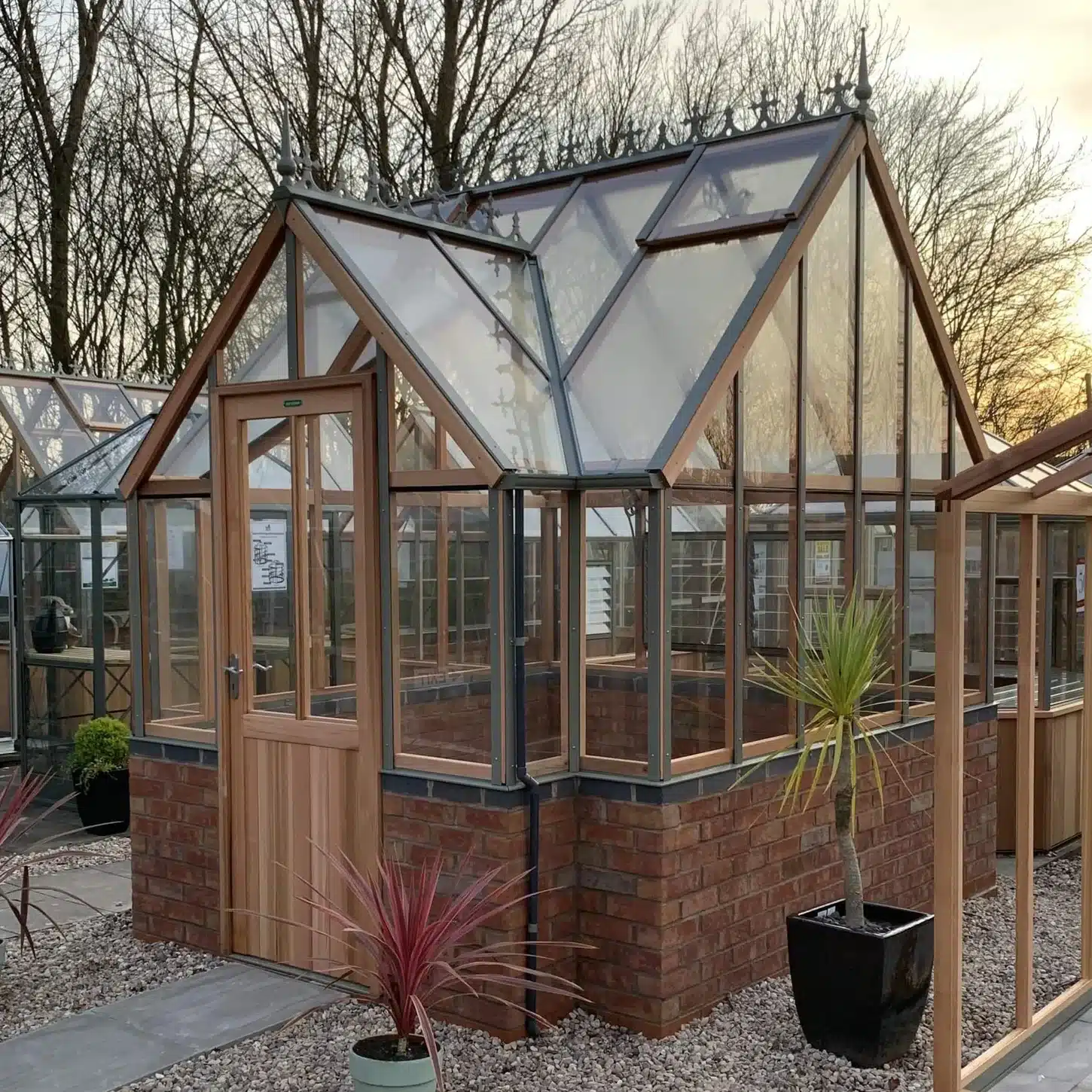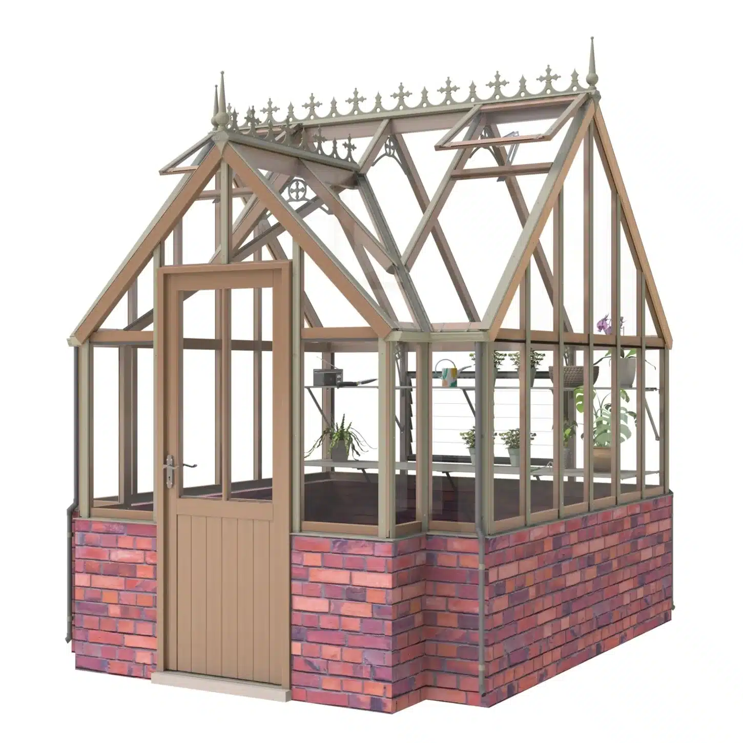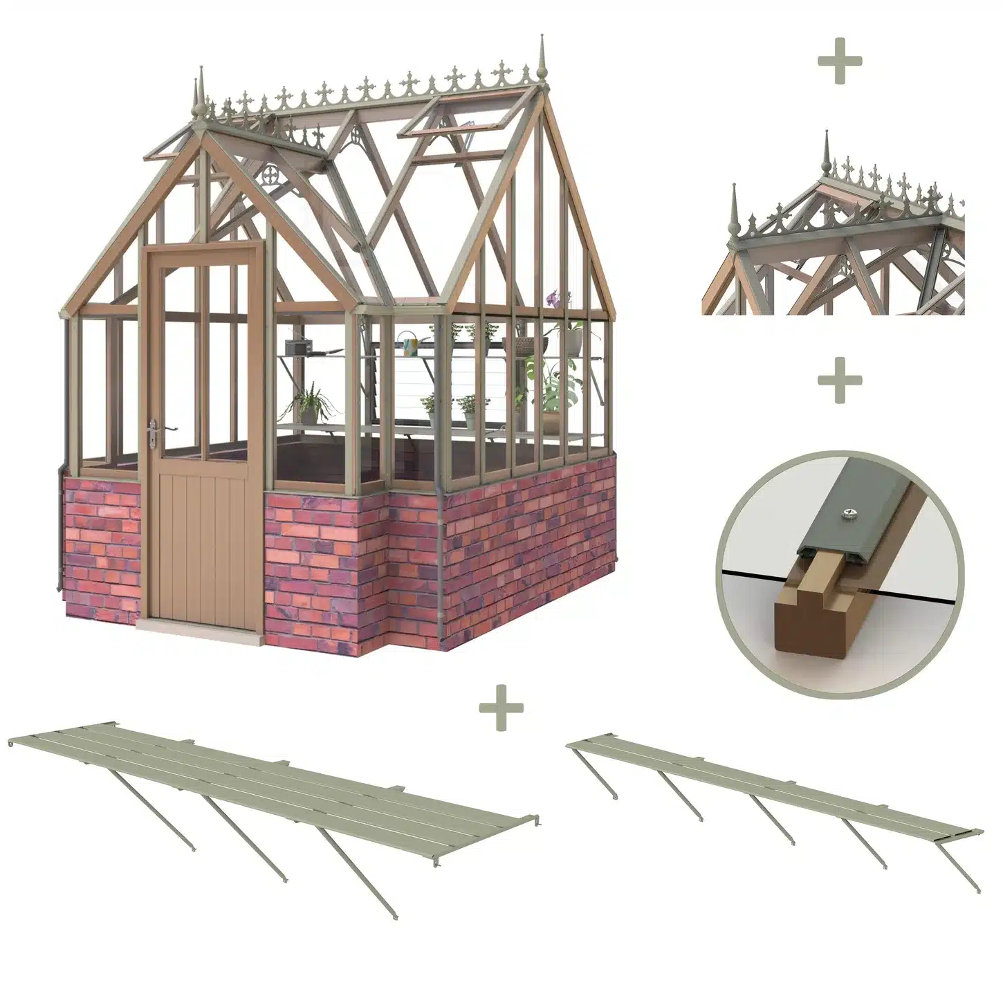 Tuotteet / Kasvihuoneet / Alton FSC setripuiset kasvihuoneet / Alton Elmhurst Cedar tiilimuurilla / Cambridge Cedar täyskorkeilla seinillä, 7,71 m2 kasvihuone