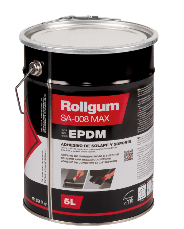 Rollgum SA-008 MAX on synteettisistä kumeista ja liuottimista valmistettu ristisilloitettu kontaktiliima vedeneristyskalvojen liittämiseen ja kiinnittämiseen erilaisiin alustoihin. Väri: musta.